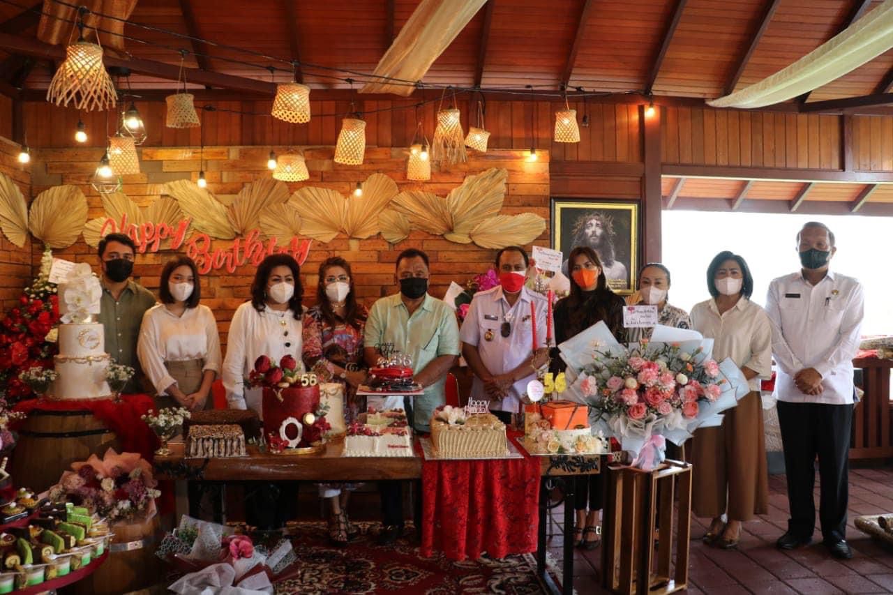 Minahasa – Bupati Minahasa Dr Ir Royke Octavian Roring MSi, didampingi Ketua Tim Penggerak PKK Kabupaten Minahasa, Dra Fenny Ch M Roring-Lumanauw SIP dan jajaran Pemerintah Kabupaten Minahasa, menghadiri Ibadah Syukur Keluarga Dondokambey-Lengkong, atas perayaan Hari Ulang Tahun ke-64 Wakil Bupati Minahasa Dr (HC) Robby Dondokambey SSi MM pada tanggal 1 Maret 2022 dan Hari Ulang Tahun ke-56 Wakil Ketua Tim Penggerak PKK Kabupaten Minahasa Martina W Dondokambey-Lengkong SE, Rabu (16/03) siang, bertempat di Kediaman Keluarga Dondokambey-Lengkong, di Desa Kolongan, Kecamatan Kalawat, Kabupaten Minahasa Utara.