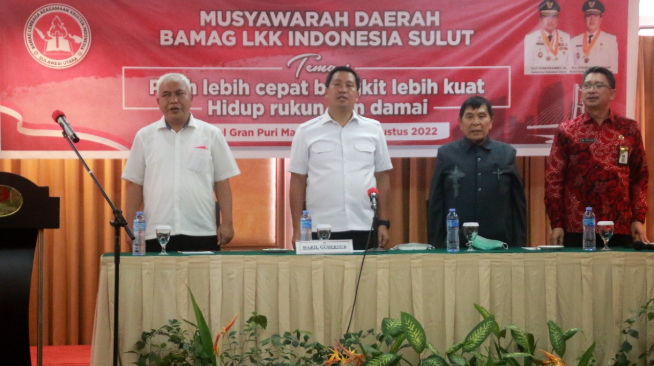 Demikian disampaikan Wakil Gubernur Sulut, Drs Steven OE. Kandouw saat membuka Musyawarah Daerah (Musda) Badan Musyawarah Antar Gereja – Lembaga Keagamaan Kristen Indonesia (BAMAG-LKKI) Sulut Tahun 2022 di Hotel Gran Puri Manado, Rabu (24/08/2022).