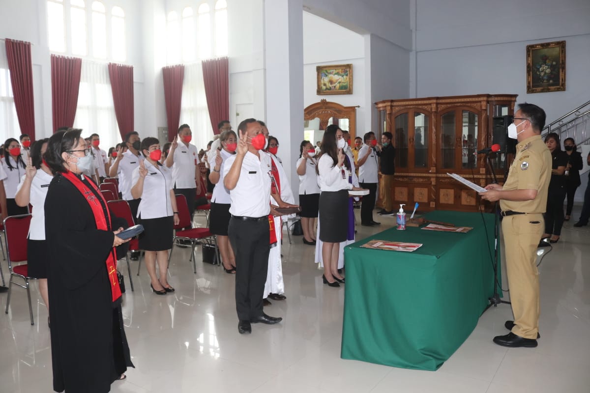 Tomohon – Pelantikan Pejabat Administrator dan Pengawas di Lingkungan Pemerintah Kota Tomohon, dilaksanakan di Rumah Dinas Walikota, selasa (12/04/2022). Pelantikan dilakukan Walikota Tomohon Caroll J A Senduk SH.