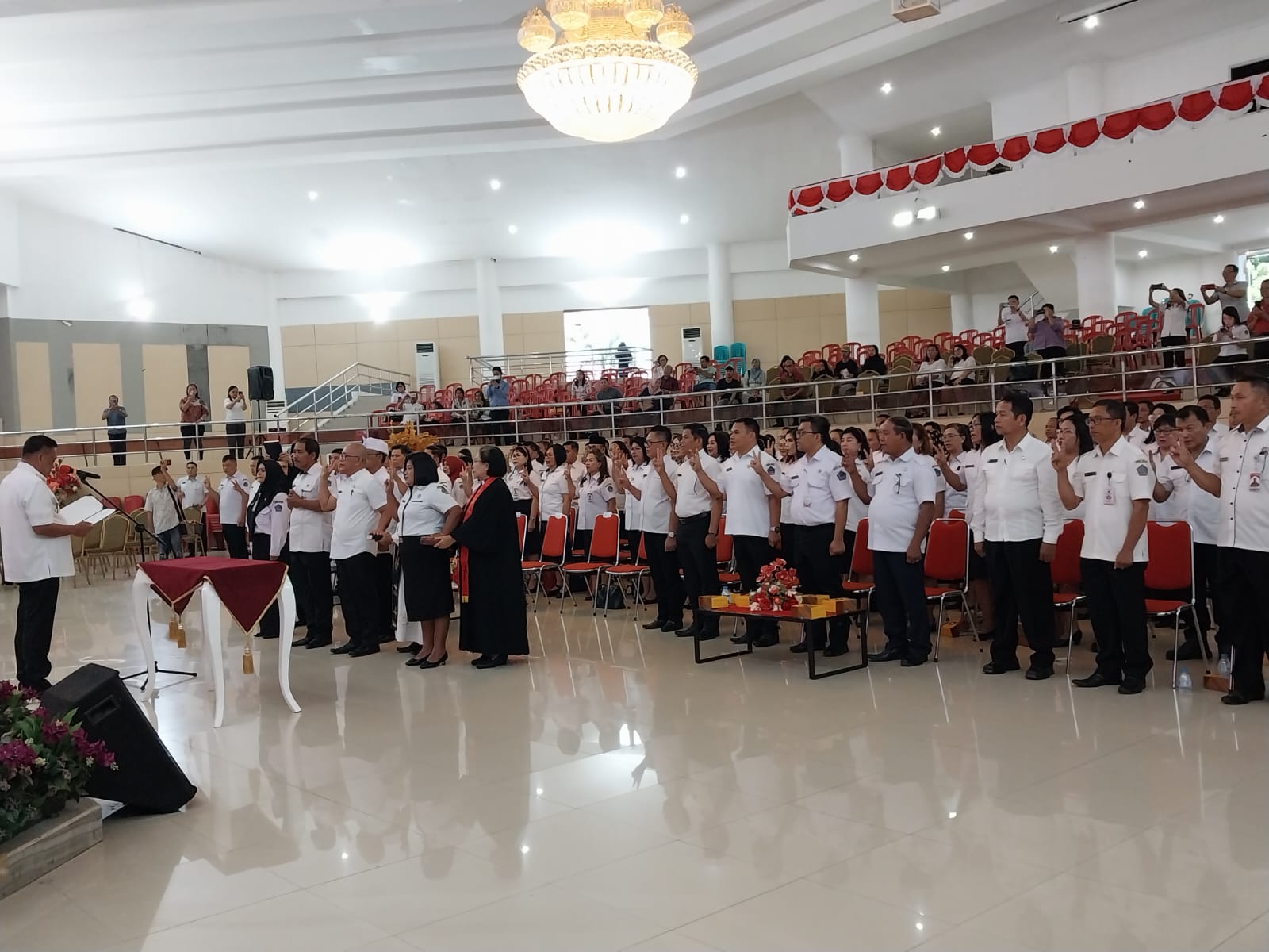 Manado – Gubernur Sulawesi Utara (Sulut) Olly Dondokambey didampingi Wakil Gubernur Steven Kandouw melantik Kepala Satuan Pendidik SMA, SMK dan SLB, Rabu (12/4) di Aula Mapalus Kantor Gubernur.