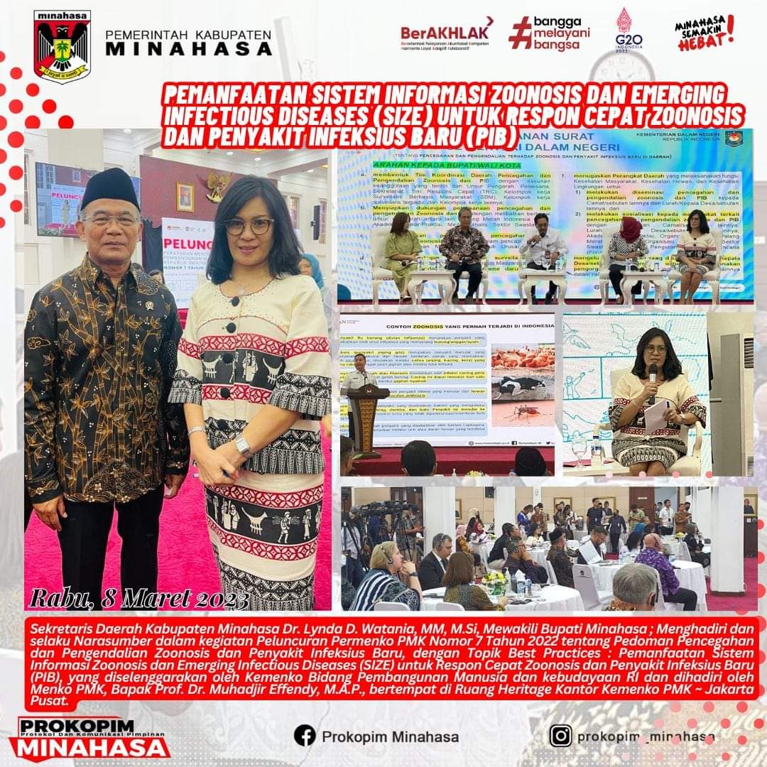 Jakarta – Sekretaris Daerah (Sekda) Kabupaten Minahasa, Dr Lynda Deasy Watania MM MSi, menghadiri peluncuran Peraturan Menteri Koordinator (Permenko) Bidang Pembangunan Manusia dan Kebudayaan (PMK) Repoblik Indonesia, nomor 7 tahun 2022, tentang pencegahan dan pengendalian zoonosis dan penyakit infeksius baru, Rabu (08/03), bertempat di ruang Heritage Kantor Kemenko PMK, Jakarta Pusat.