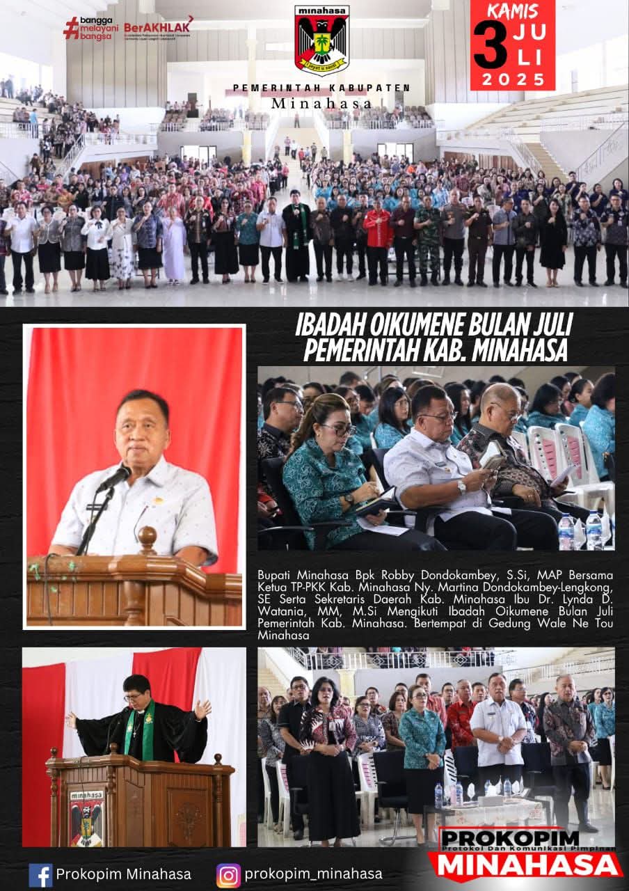 Minahasa – Jajaran Pemerintah Kabupaten (Pemkab) Minahasa, Kamis (03/07) pagi, melaksanakan Ibadah Oikumene, bertempat di Wale Ne Tou Tondano.