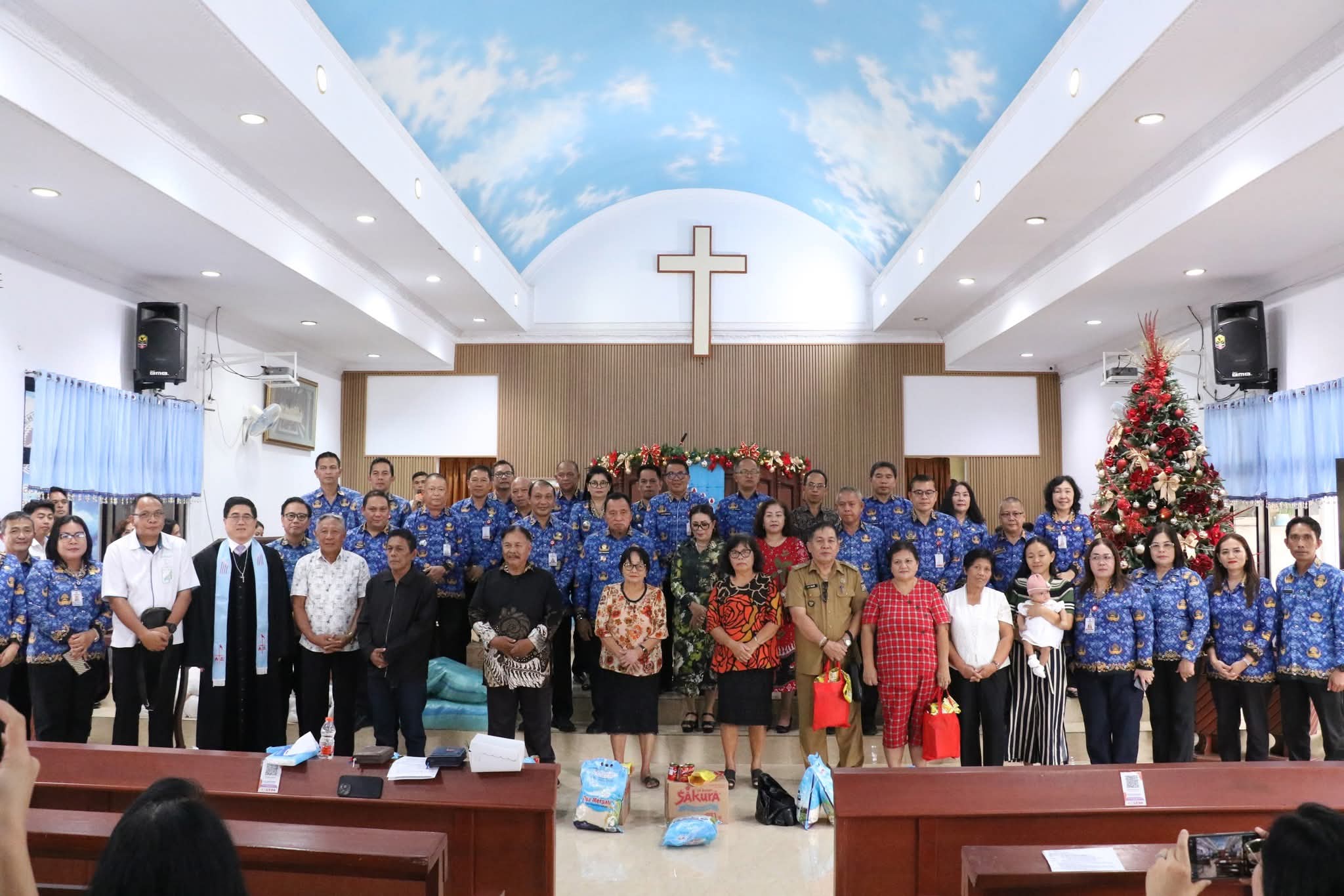 Diakhir ibadah, dilakukan penyerahan bantuan dan Diakonia Natal bagi warga kurang mampu dan stunting.(Advetorial)
