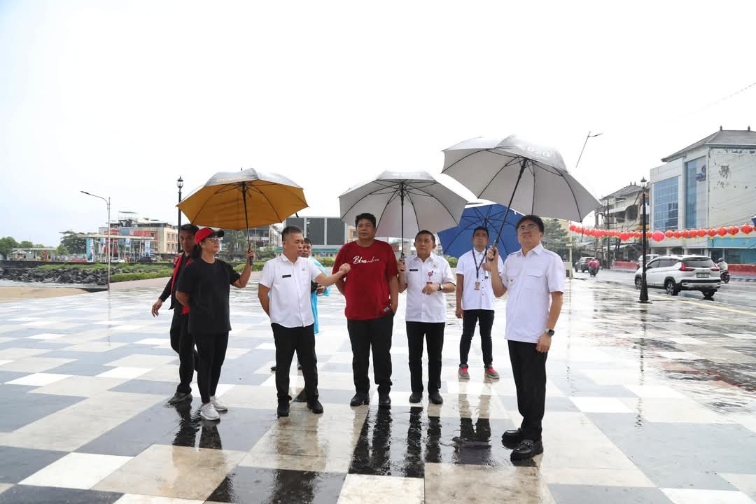 Manado – Walikota Manado Andrei Angouw meninjau Lokasi Taman Berkat dan Pasir Putih Sario, Jalan Piere Tendean Boulevard Manado, Rabu (22/01/25) pagi.
