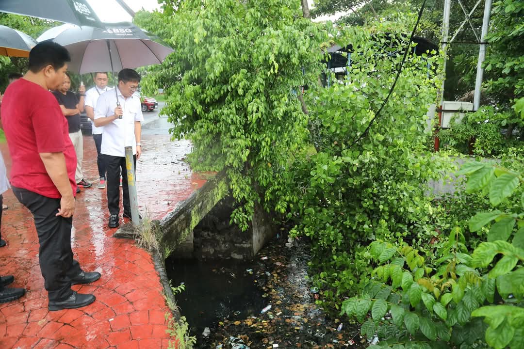 Meskipun dalam situasi cuaca hujan Walikota bersama tim tetap melakukan inspeksi lapangan.